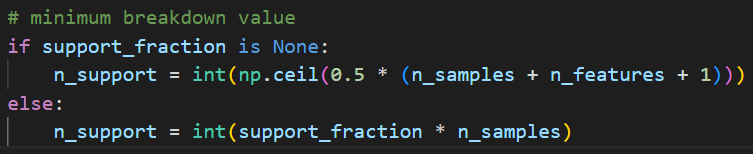 그럼 r을 몇개로 정할 지는 어떻게 정할까? sklearn의 mcd 내부 코드를 보면 아래와 같다.