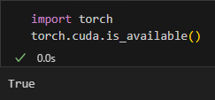 마지막으로 설치 완료 후 밑에 코드 실행시켜 True가 나온다면 성공이다.