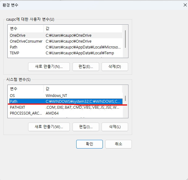 이렇게하면, path설정을 끝나게 되고 이제 잘 작동하는지 확인하기 위한 테스트를 해본다.