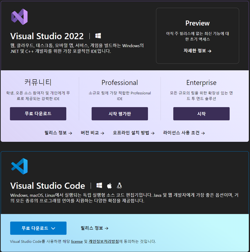 Visual Studio는 Window환경에서 코딩을 할때 주로 지원을 한다.