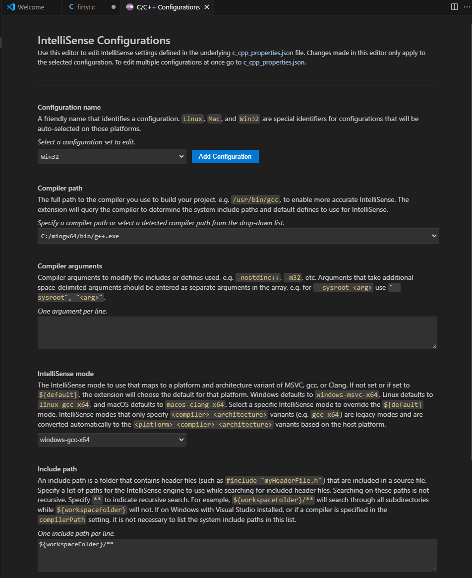 지금까지 vscode에서 C/C++을 사용하기 위한 설정을 알아보았습니다.