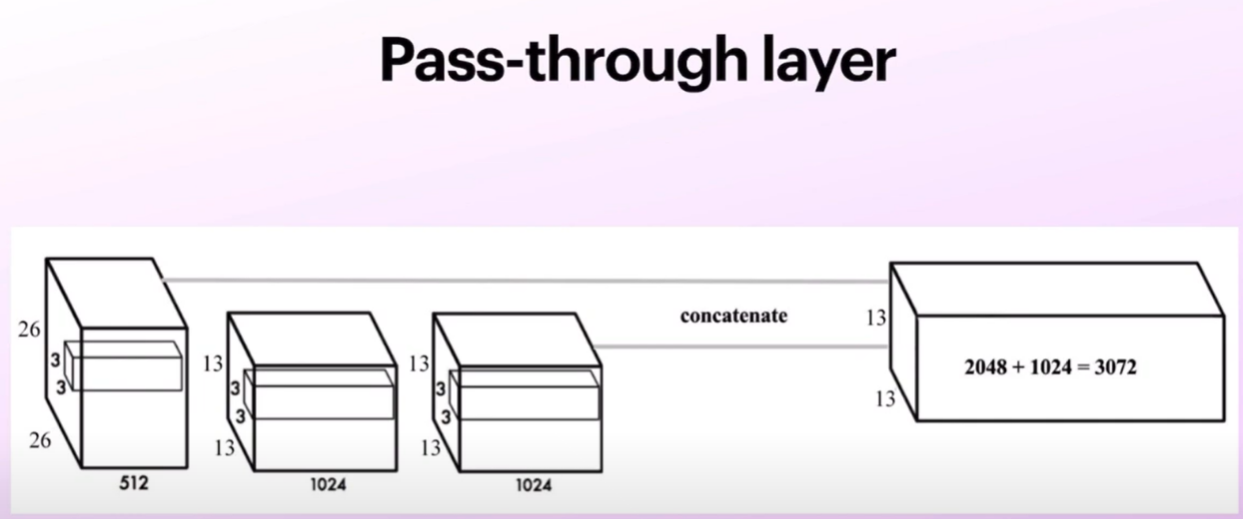 일단, 이건 접어두고, Pass-through layer를 살펴보면, 기존 상위 layer를 reshape하여 하위 layer 출력에다 concatenate 하여 사용한다. 이럴경우, 작은 object를 탐지하는데 도움이 된다고 한다.
