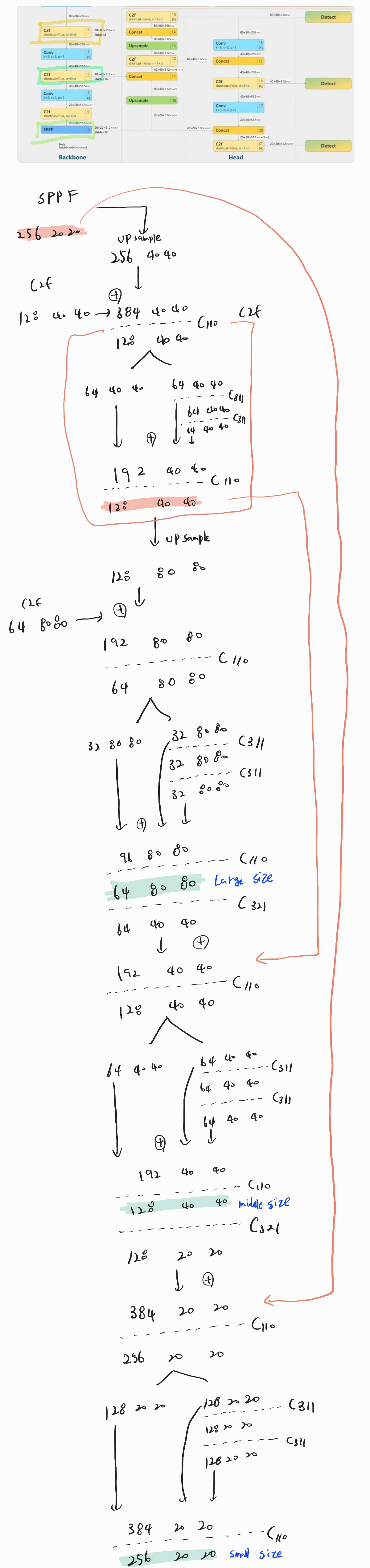 이전까지는 YOLOv8의 BackBone이 어떻게 돌아가는지 코드를 디버깅해보고, 손으로 input image의 shape의 변화를 작성해 봤다.