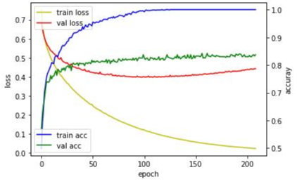 왼쪽 그래프는 빨간색 선이 100epoch 이후에 상승(오버 피팅) 하는 걸 볼 수 있지만, 오른쪽은 상대적으로 loss가 줄어드는 것을 볼 수 있다. 어느 정도 오버 피팅이 되는 것을 방지했다고 볼 수 있다.