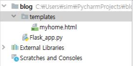 아, 여기서 주의사항이 있다. 작성한 html은 반드시 프로젝트 폴더 안 'templates'라는 이름의 폴더를 만들고 이 폴더에 넣어야 한다. 이렇게 말이다.