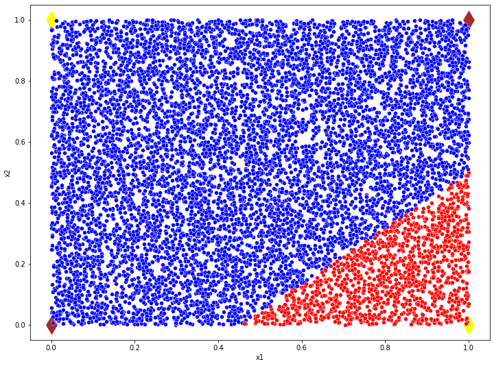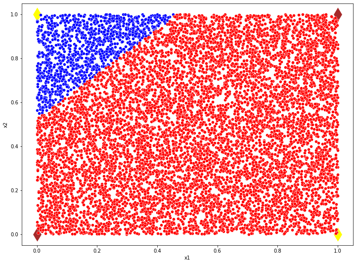 결론은...! 인터넷에 다수 돌아다니는 '선'을 직접 그리진 못하지만, 엄청나게 많은 x1,x2를 생성해 그려보면 선을 추정할 수 있었다! (선을 그린다고 봐도 무방하다!!!!!!)