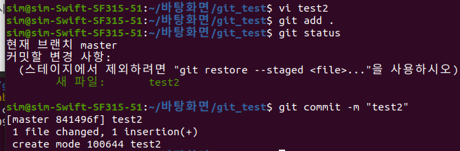 이처럼 2개의 파일을 만들어 각각 commit을 해보자 ( 2번의 업데이트가 존재)