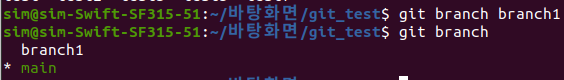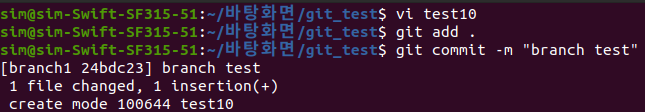 위에가 main / 밑에가 branch1 인데, test10파일이 branch1에만 존재하는 것을 볼 수 있다.. 신기함..
