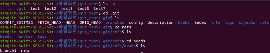 branch는 {파일}/.git/refs/heads에 들어가보면 볼 수 있다.
