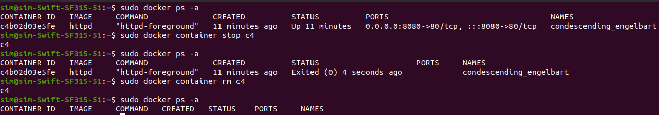 사용 했던 컨테이너를 깔끔하게 지웠다.