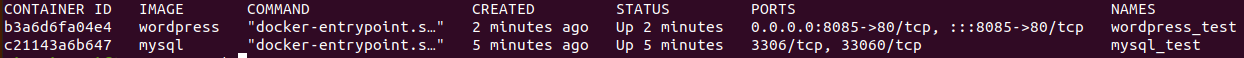 docker run --name wordpress_test -dit --net=test_network -p 8085:80 -e WORDPRESS_DB_HOST=mysql_test -e WORDPRESS_DB_NAME=my_database -e WORDPRESS_DB_USER=sim -e WORDPRESS_DB_PASSWORD=sim wordpress
