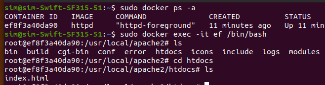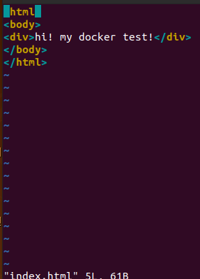 (vi index.html로 확인 가능함. 혹, 안된다면.. apt-get update / apt-get install vim 을 통해 깔아줘야함)