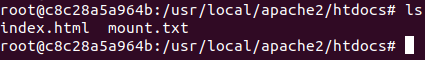 이렇게 로컬폴더(docker_input)과 컨테이너 폴더(htdocs)를 마운트 해준 상태에서 로컬 폴더에 mount.txt라는 파일을 생성해보았다. 이제 컨테이너 폴더(htdocs)에 들어가보자.