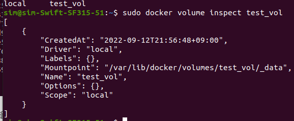 inspect 명령어를 통해 잘 마운트 되었는지 확인도 할 수 있다.