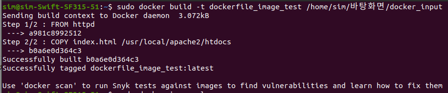 여기서는 dockerfile_image_test 라는 이름으로 이미지를 만들었고, 이미지 목록을 봐보면..