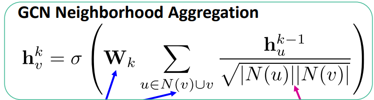 기존 업데이트 방식에서는 W1,W2를 따로 구성하여 노드u, v에 곱했지만, GCN에서는 W하나를 share하여 사용한다.