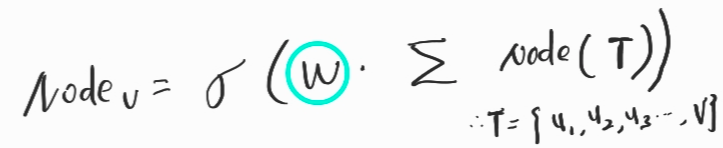 2. 노드 v와 W2(학습가능한 weigth)를 곱한다.