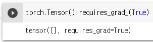하지만, torch.Tensor()에 데이터가 없어도 함수를 통해 강제로 requires_grad = True로 만들어 줄 수 있다.