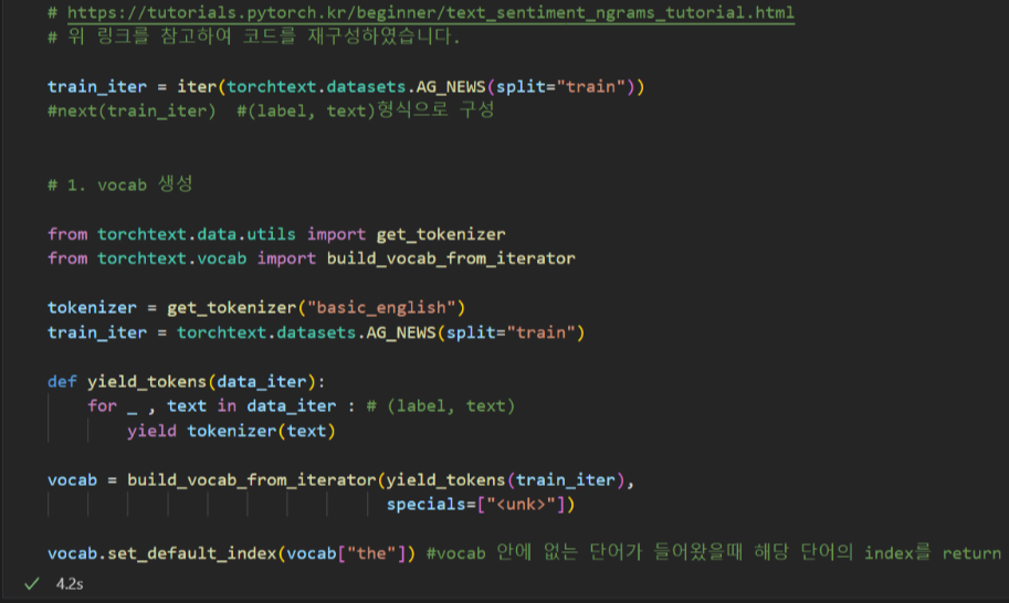 * build_vocab_from_iterator > vocab을 만들어주는 함수