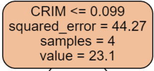 이처럼 Root의 왼쪽 자식 Node를 Split 할때 CRIM의 0.074, ZN의 20을 기준으로 Split 한것을 볼 수 있다.