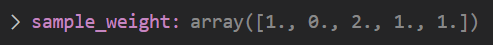 이처럼 , 2번째 데이터는 한번도 들어가지 않고, 3번째 데이터는 2개가 들어간다는 표현을 sample_weight를 통하여 알려줘 학습을 진행한다!