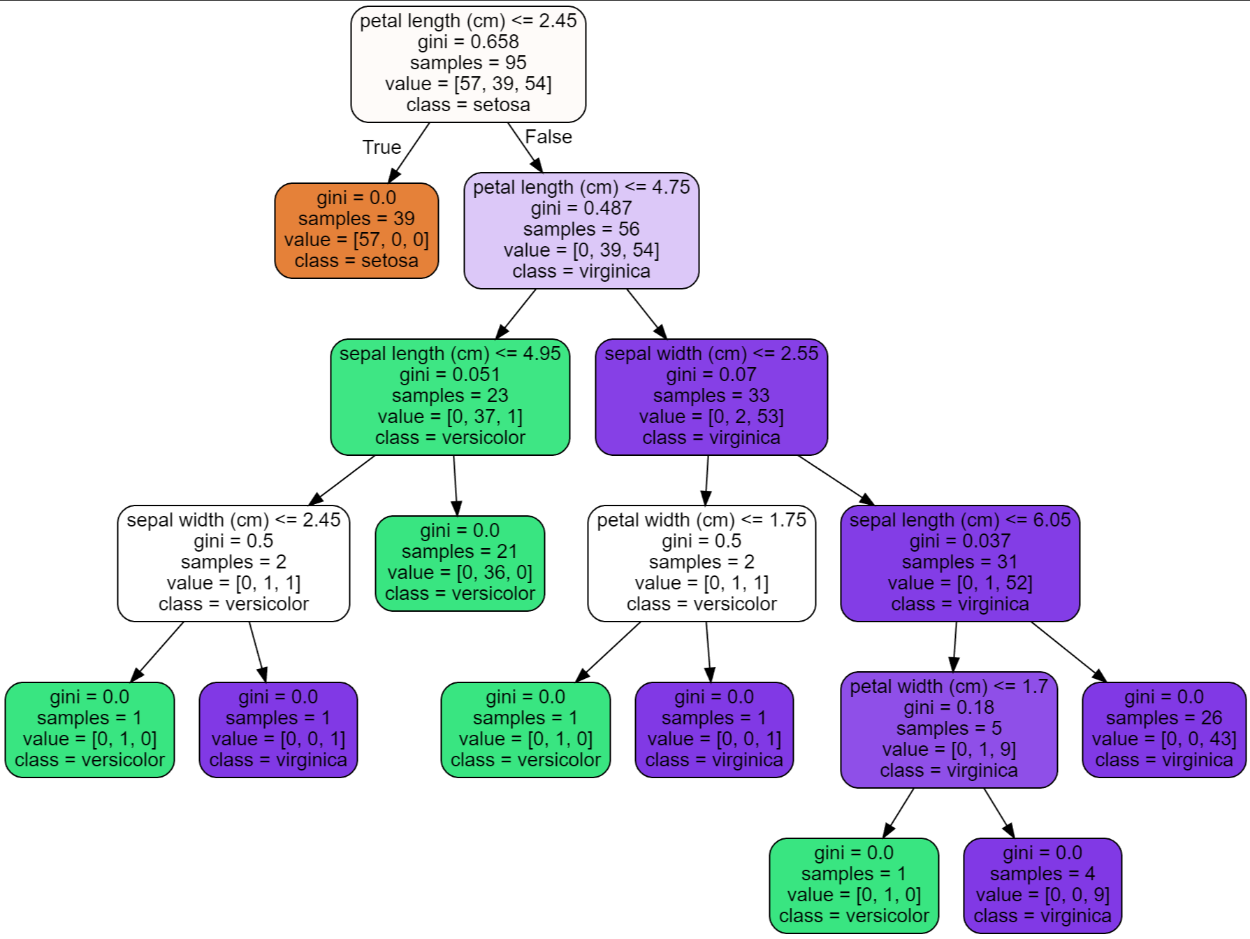 위 [그림 3]은 iris data를 Random Forest로 구분한 것이다. iris data는 총 4개의 feature가 있다.