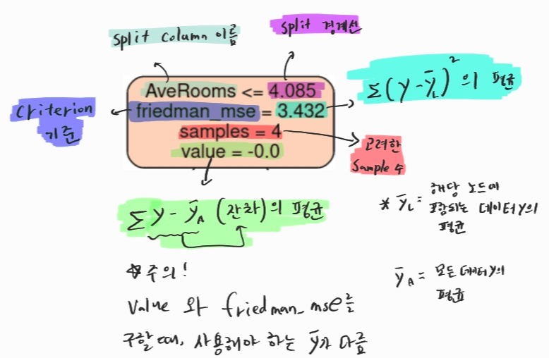 DT에서는 split 기준(criterion)공식을 squared_error로 사용한다. 하지만, GBM속 안 DT는 Friedman mse를 사용한다고 한다.